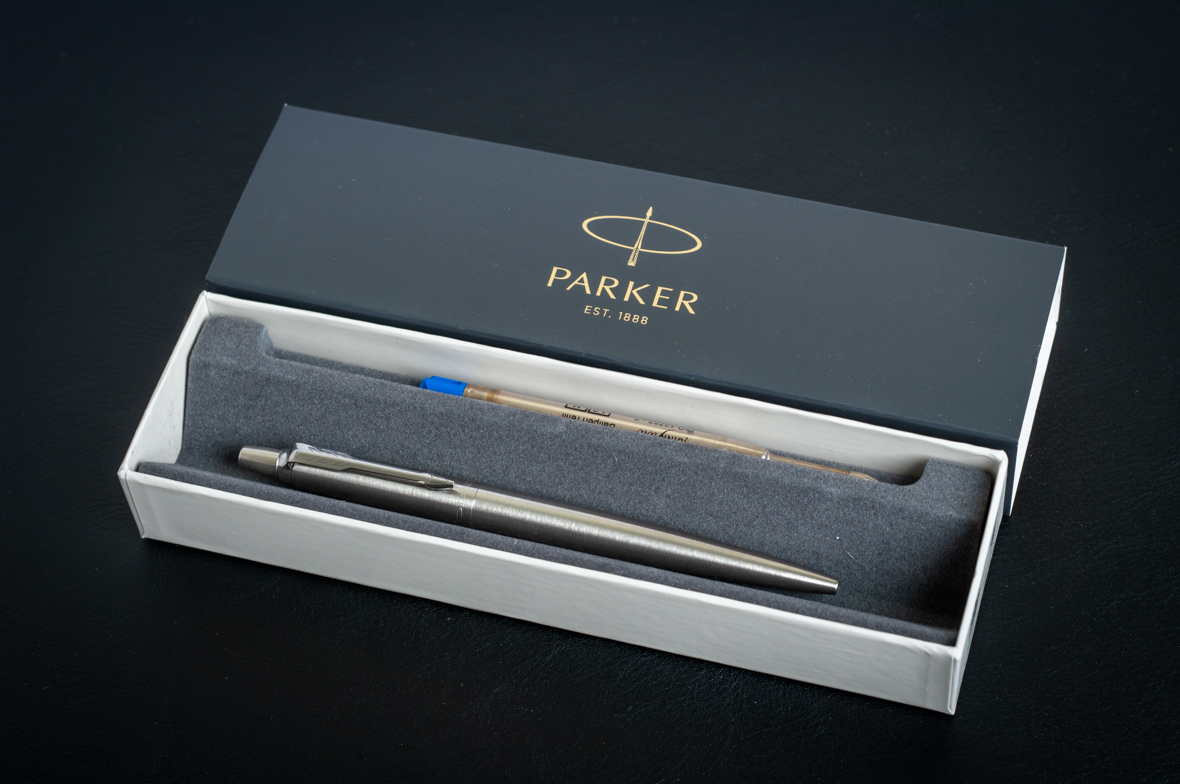 Шариковая ручка Parker Jotter Stainless Steel CT от официального дилера Parker в Евпатории. Вы можете дополнительно заказать гравировку, которая подчеркнет Вашу оригинальность и придаст памятность статусному подарку. Все ручки Паркер поставляются в фирменном футляре.