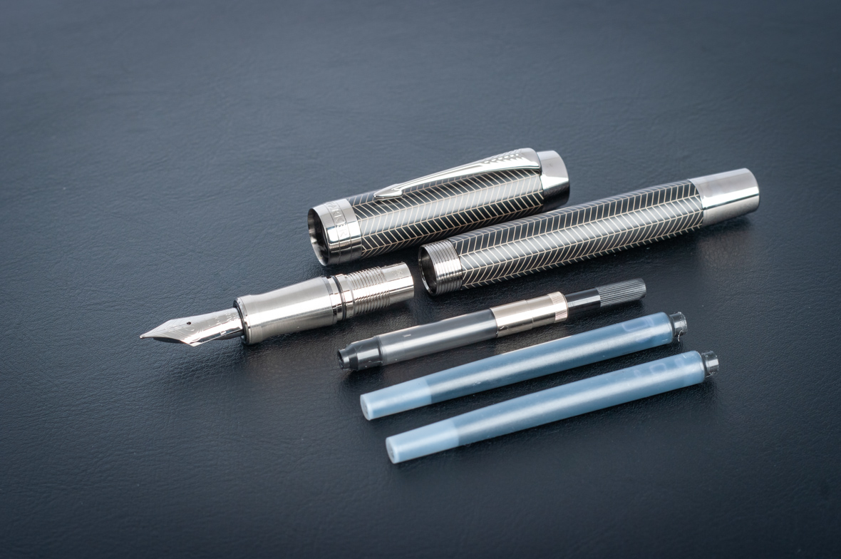 Перьевая ручка Parker Duofold Prestige Centennial Black Chevron CT от официального дилера Parker в Евпатории. Вы можете дополнительно заказать гравировку, которая подчеркнет Вашу оригинальность и придаст памятность статусному подарку. Все ручки Паркер поставляются в фирменном футляре.